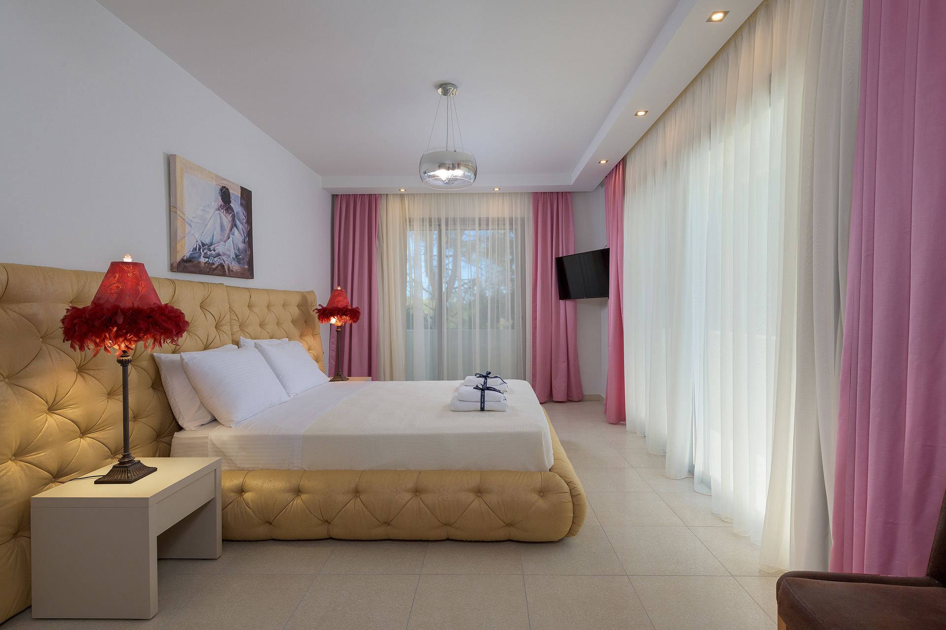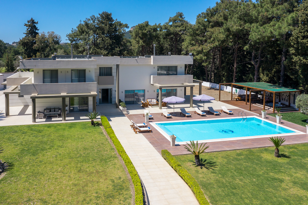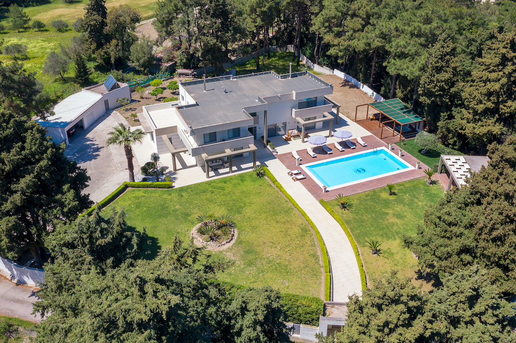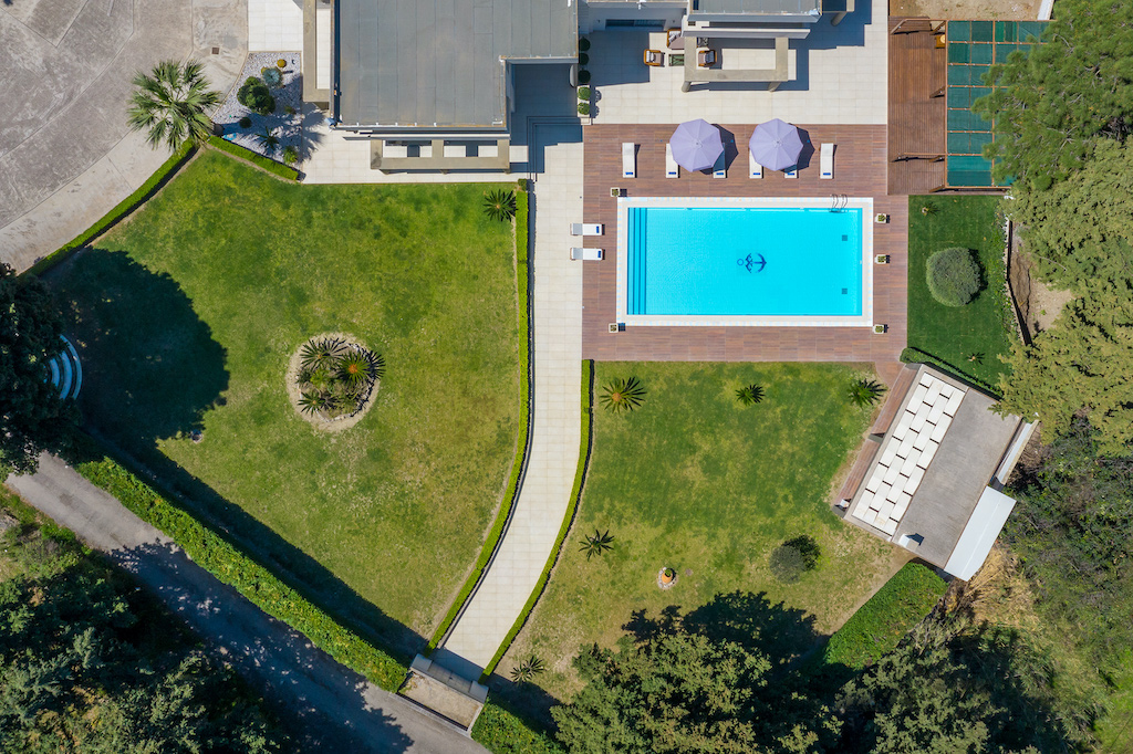 It is built in a private plot measuring 4000 square meters. Our 2 levels luxury villa of 500 m2, provides luxurious and comfortable accommodation for families, couples or groups of friends. The villa has elegant living areas, modern comforts, a private swimming pool and magical green surroundings for a pleasant, relaxing and memorable stay.