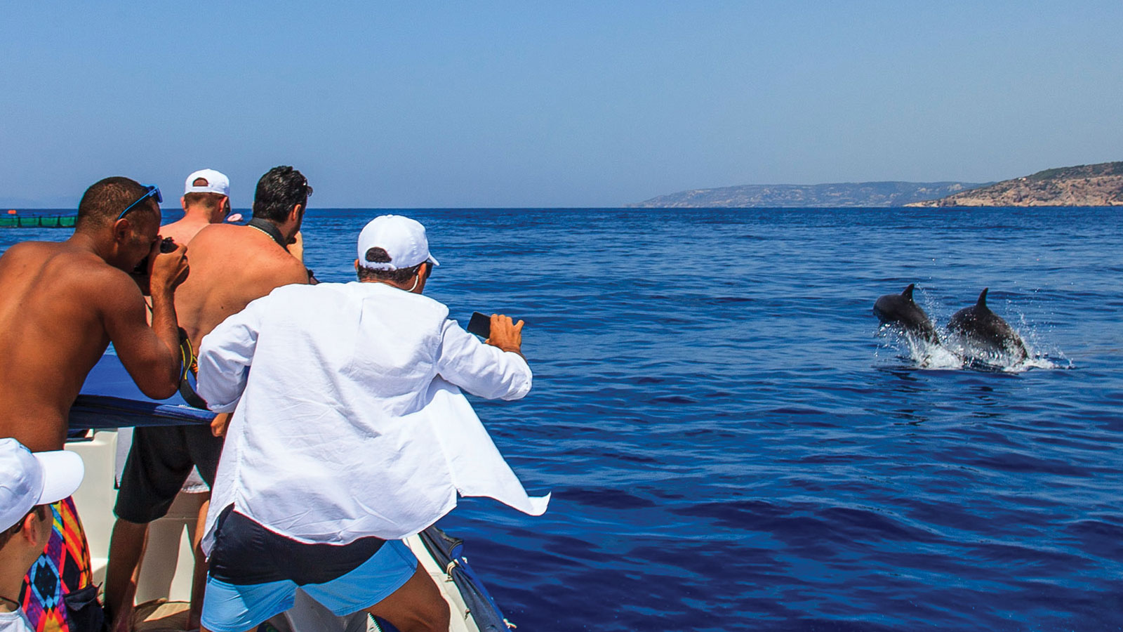 During our tours you will enjoy educational visits to the nearby marine farm and its onshore facilities, snorkeling and scuba diving trips, diving with dolphins and other large fish!